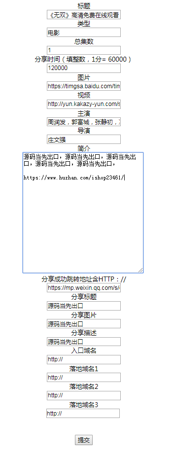 本源码主要为电影站视频或图片强制分享引流打造