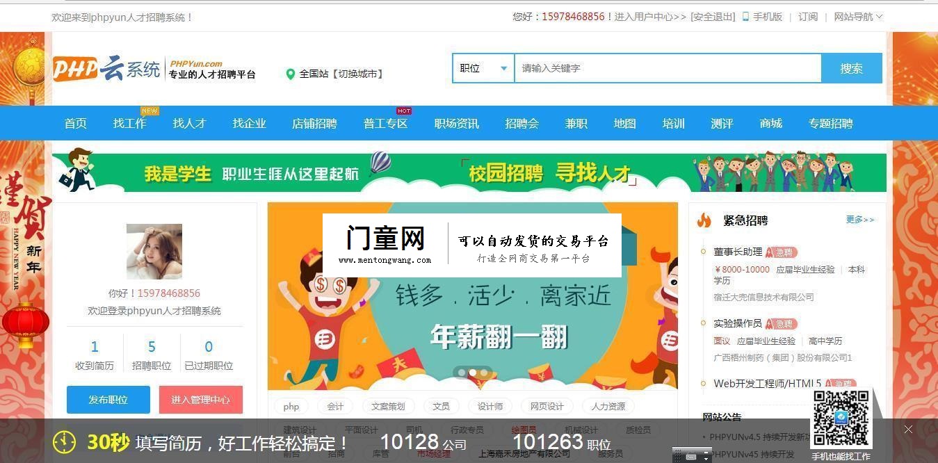 最新发布php云人才招聘系统源码V4.6 VIP版