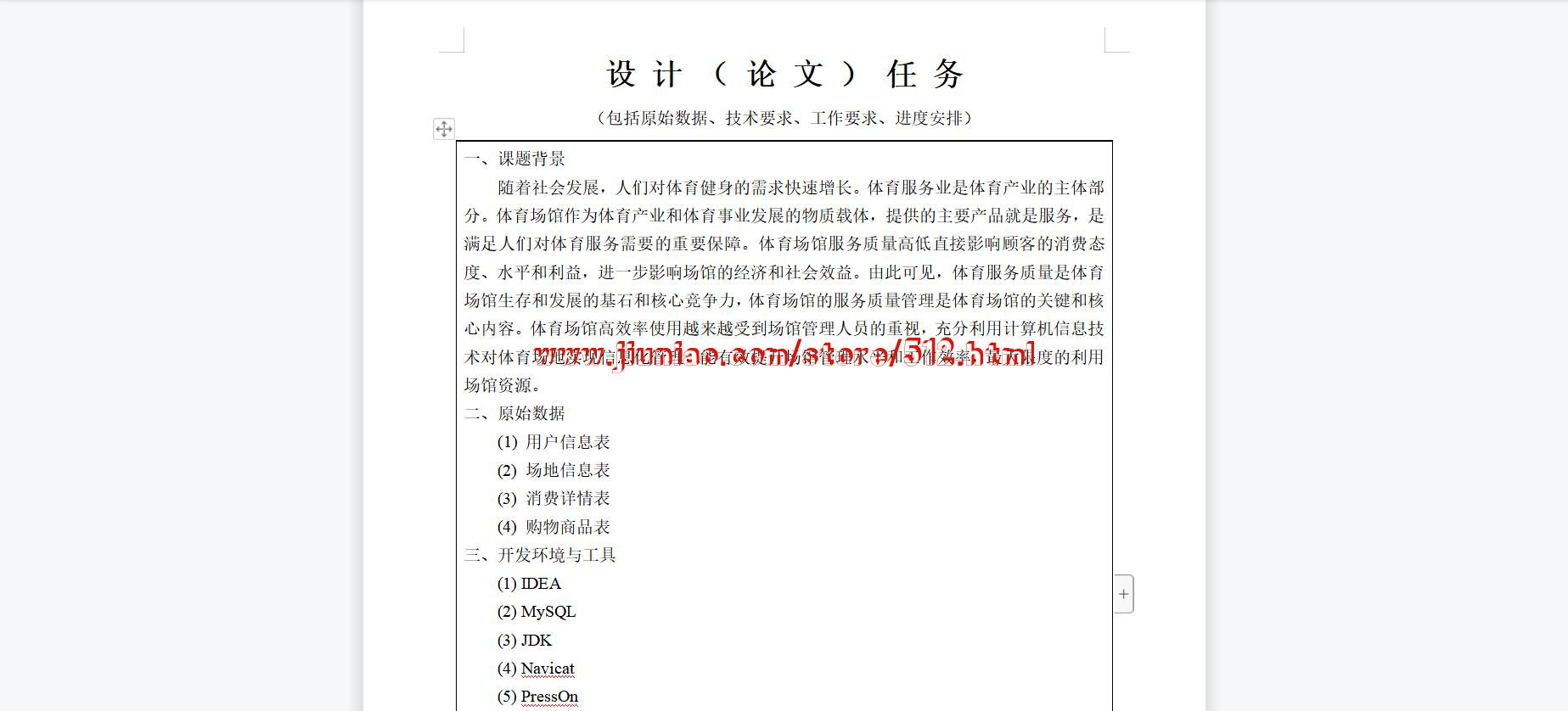 毕业设计-基于SpringBoot体育运动场馆管理系统+开题报告-任务书等