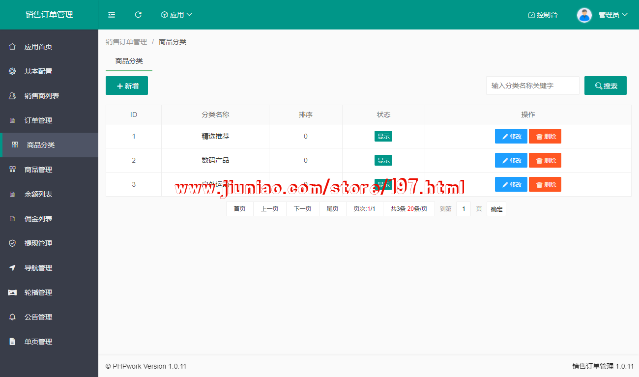 商品管理:商品分类,商品管理,可定义商品 分销设置、团队奖励设置、股东奖励设置