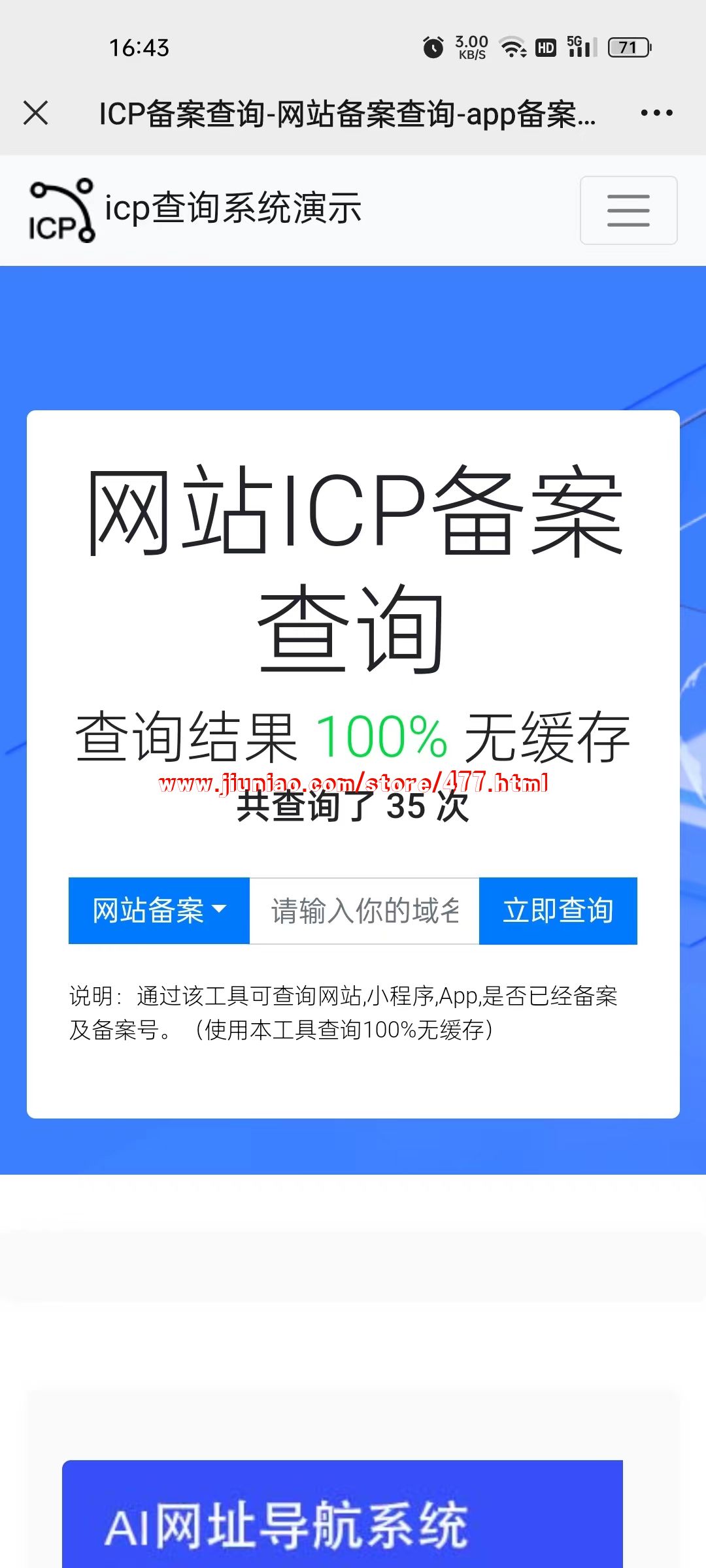 本系统有新闻板块,适合seo优化,有广告位置,方便站长设置合作商广告,支持网站网址备案查询,小程序备案查询,APP备案查询,快应用备案查询,源码优势:ui简洁大气,响应速度快,没有延迟,没有缓存。