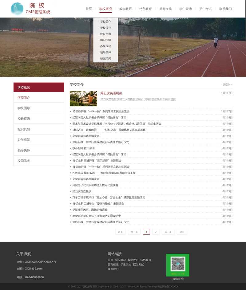 - 前端页面自适应,支持PC和H5手机端、平板电脑,采用前后端分离的机制实现。后端支持蓝色和红色换肤功能。