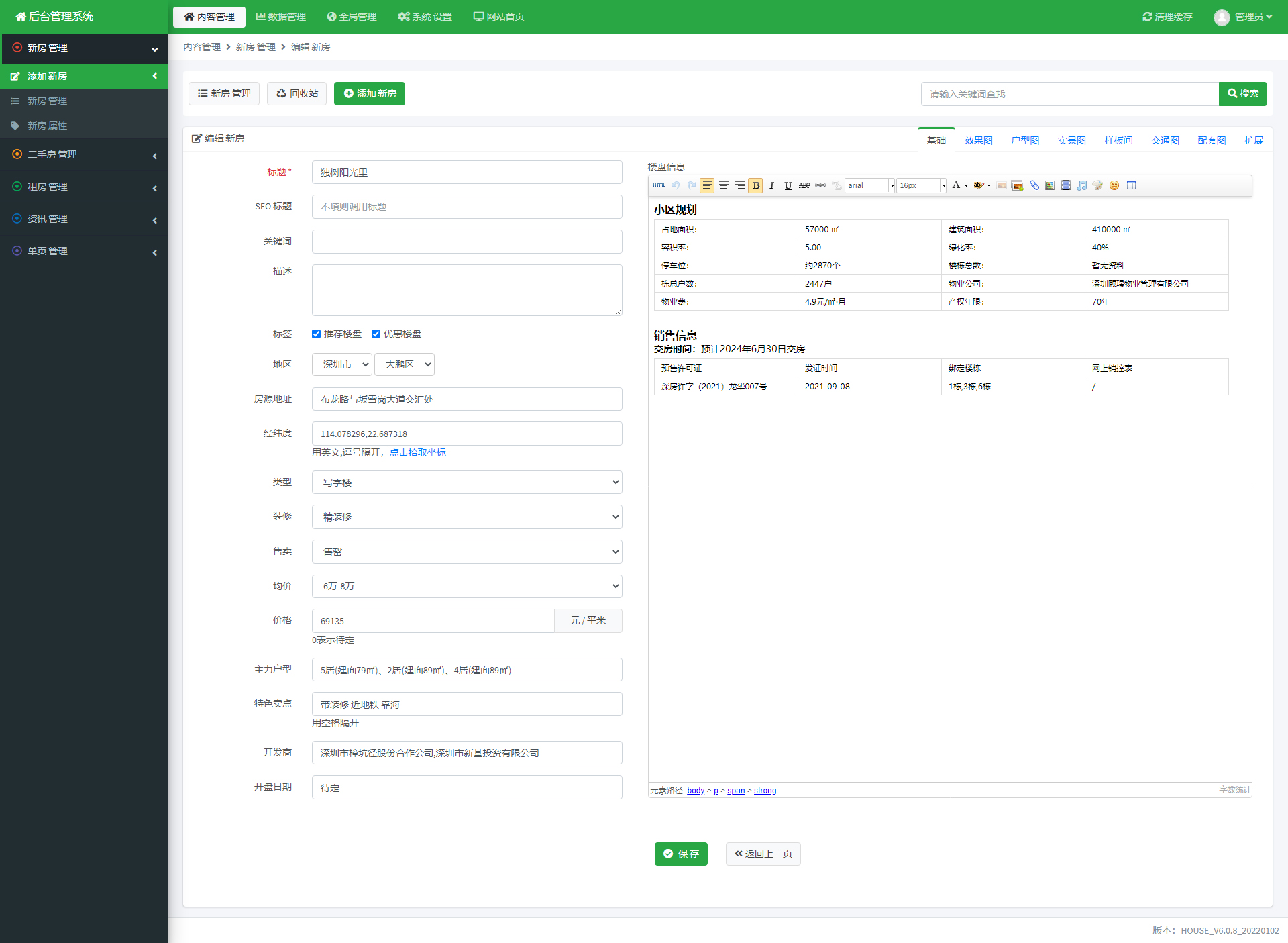 基于thinkphp6.x、bootstrap4开发,根据ip定位城市,利于SEO,前端模板自适应电脑端和手机端或模板分离;百度周边地图展示,按区域,户型,价格,物业类型,装修,面积,楼层等多条件筛选;客户询盘留言可发送短信/邮件给管理员,及时获取询盘信息,多组图多户型展示。