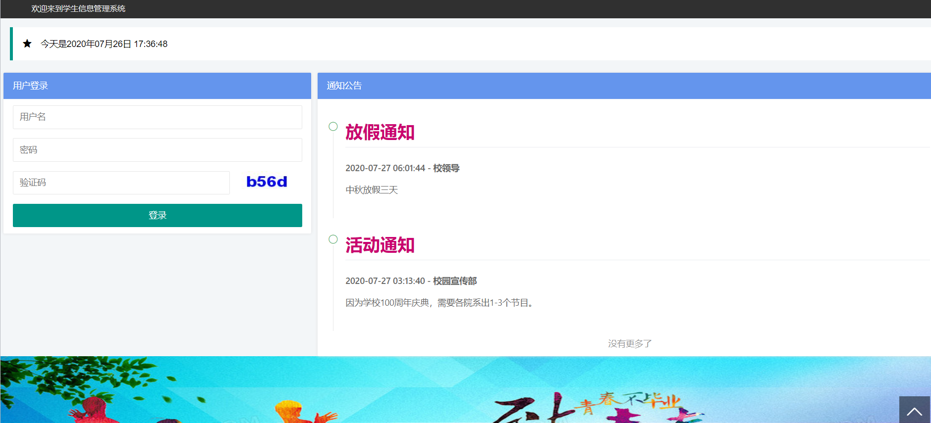 主要有 新闻公告 学生 教师 班级 系部 年级 权限管理 角色 用户信息等,具体看演示视频。