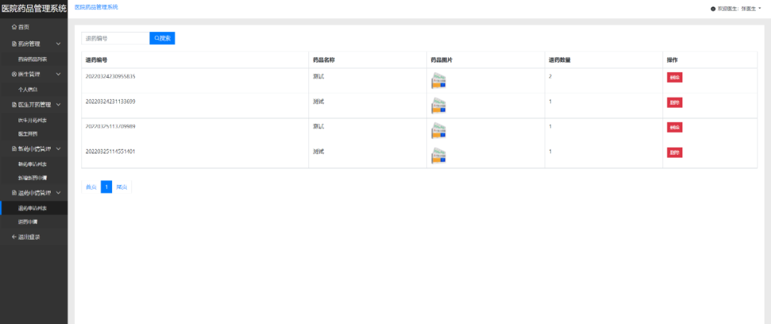 医生端主要的功能有登录、药房管理、医生开药管理、新药申请管理、退药申请管理等功能。