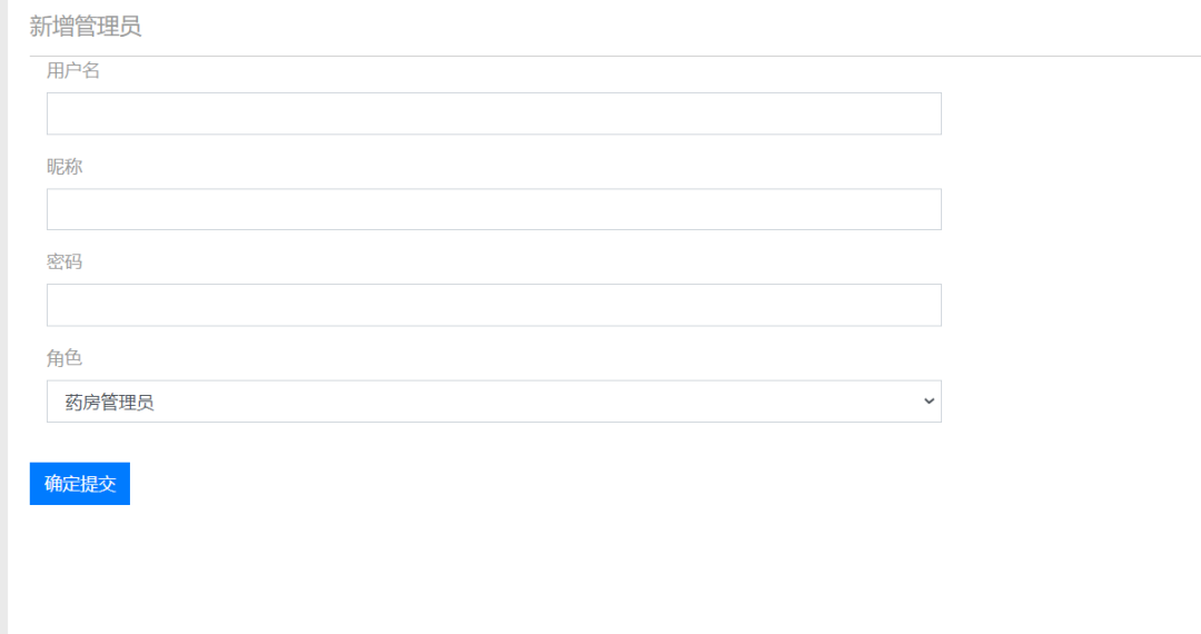 用户类型:医生、药库管理员、药房管理员、管理员(四个角色)