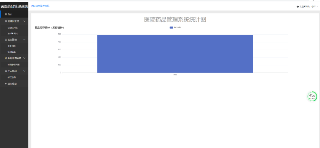 管理员端主要的功能有登录、统计、管理员管理、医生管理、新药申请管理、个人信息管理。
