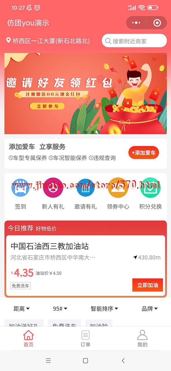 汉潮O2O优惠加油系统,将油站位置、油号、价格、优惠、保险及场站情况线上化,提高了车主和油站的信息匹配精度。当车主想来油站加油时,无论身处何地,只需在团you小程序内搜索油站名称,即可享受到“接引”服务,提前了解油站情况,按照导航可以快速找到油站,减少空驶里程,省下找油站的时间和浪费的油钱。