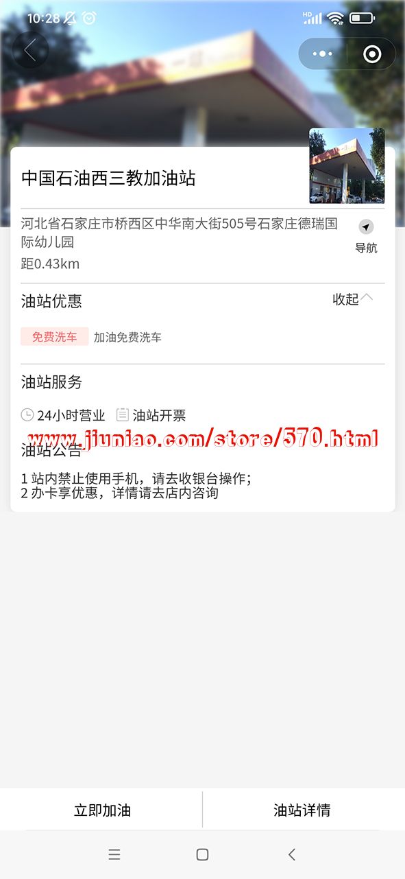 1、自动定位当前位置,查看附近加油站相关信息