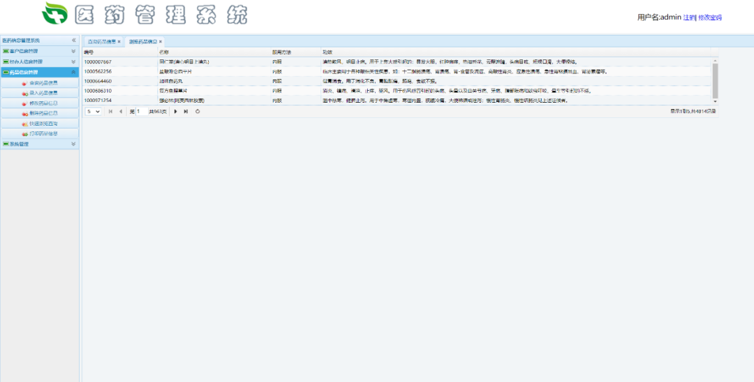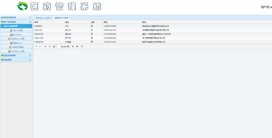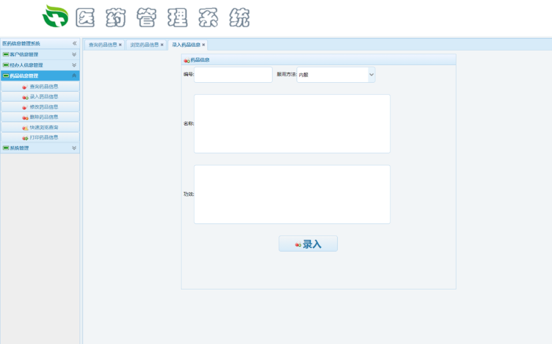 登录、查询药品、客户信息、经办人信息、录入各个模块的信息、系统管理等。