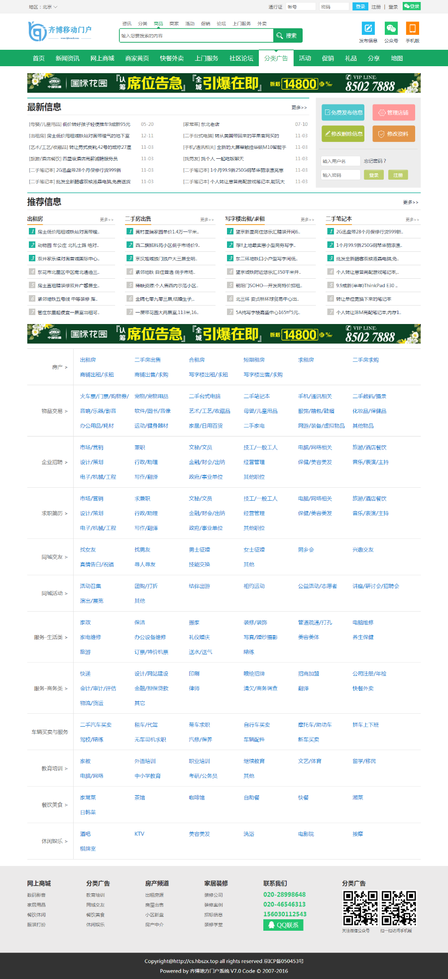 程序完全开源,无加密,无期限,无域名绑定,各个 WAP页面也是精心之作,视觉体验和用户体验也远超同行,十大主力频道,供求,快店,商家,房产,活动,招聘,商城,黄页,资讯一体化网状涵盖,地方门户系统,真正的运营级网站系统