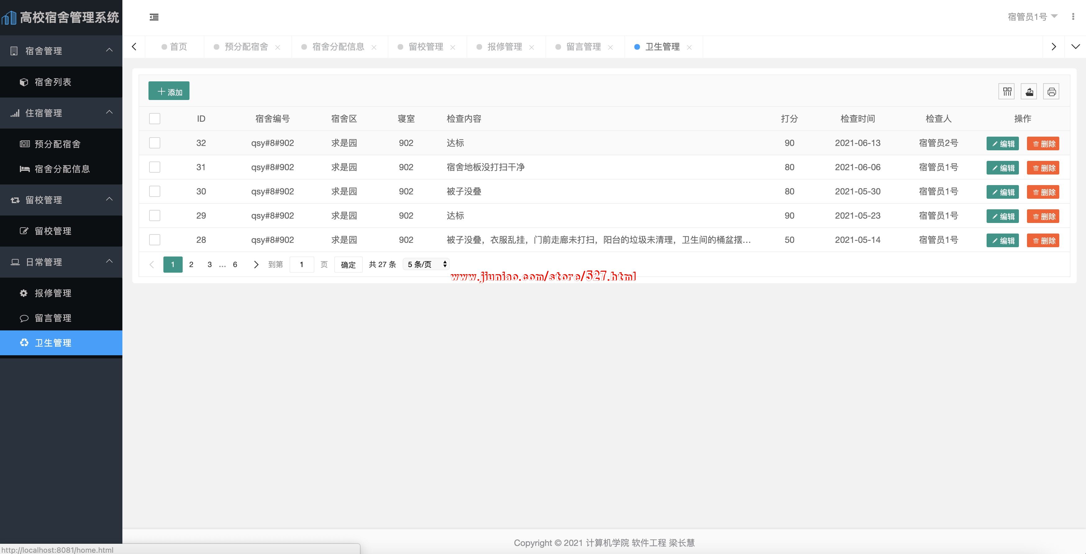 主要包括卫生管理、报修管理、留言管理等。