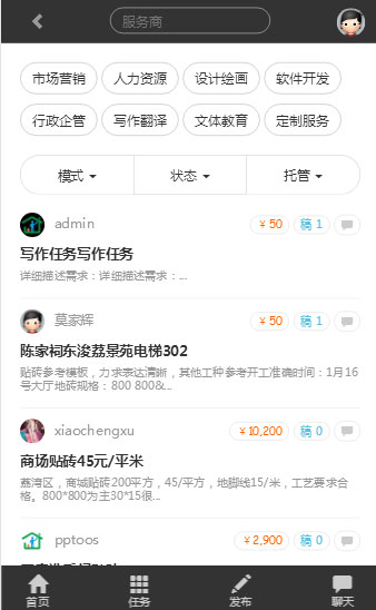 任务前台 支持 批量 中标;不合格;点评等会员中心支持 批量 发货,支付订单管理