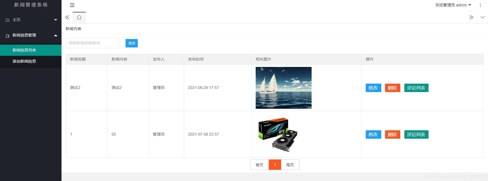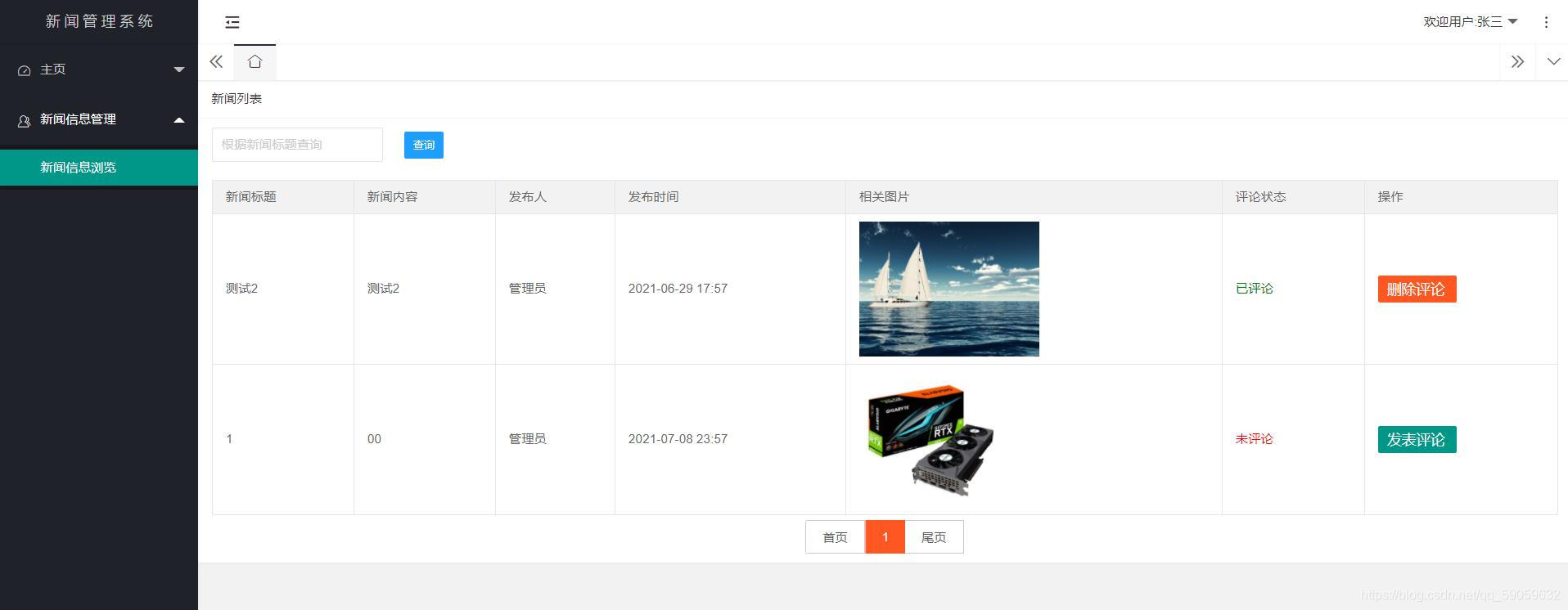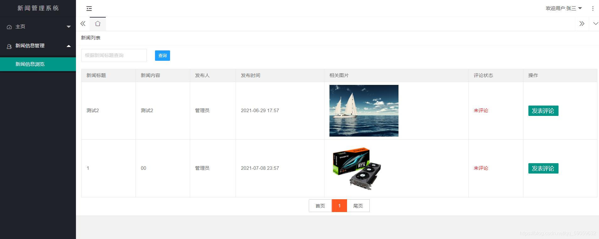 发布新闻以后,用户进行评价,管理员可以看到用户的评价内容