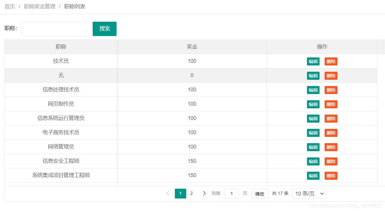 职称管理:每一个职称都有对应的奖金,会另外发送到工资上