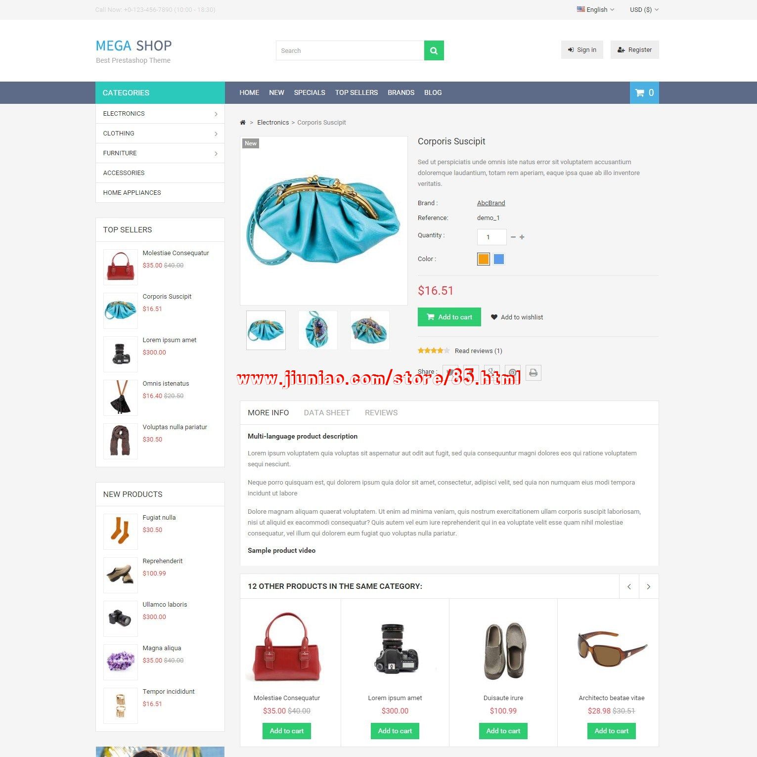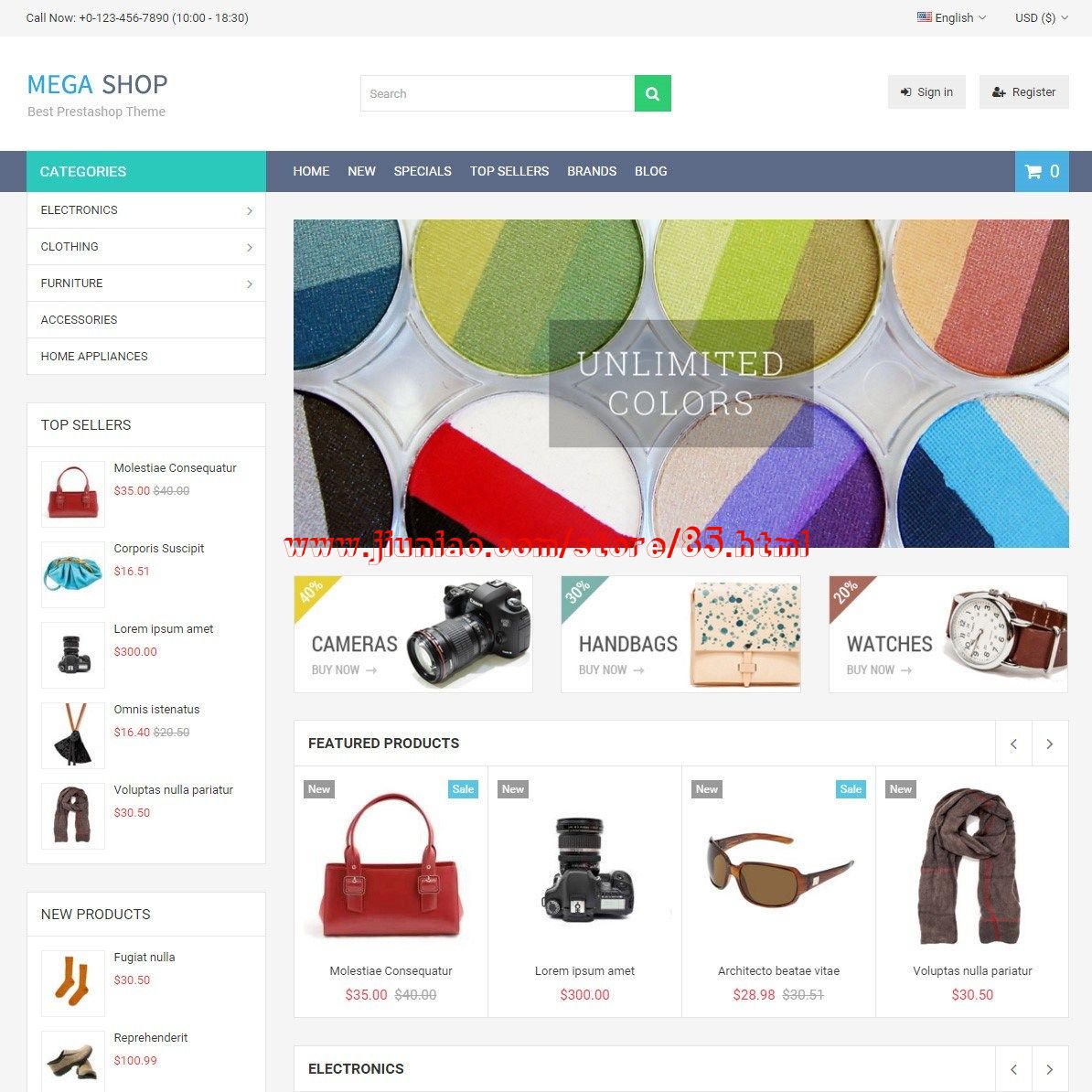 Prestashop1.6x 1.7x外贸电子鞋包主题模板MegaShop