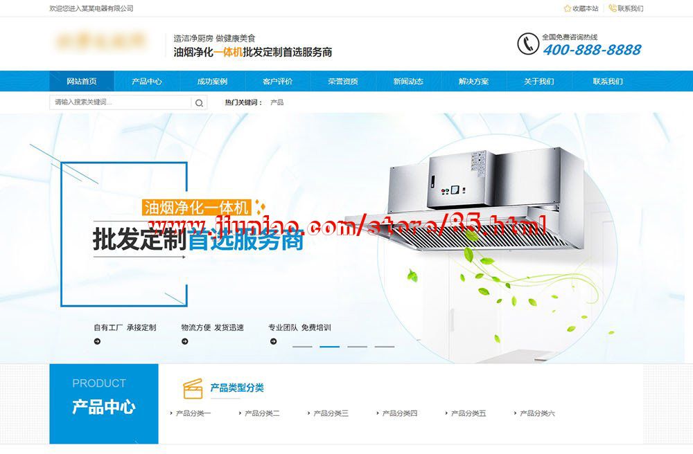 pbootcms蓝色大气营销型油烟机厨房电器企业网站源码 带手机版