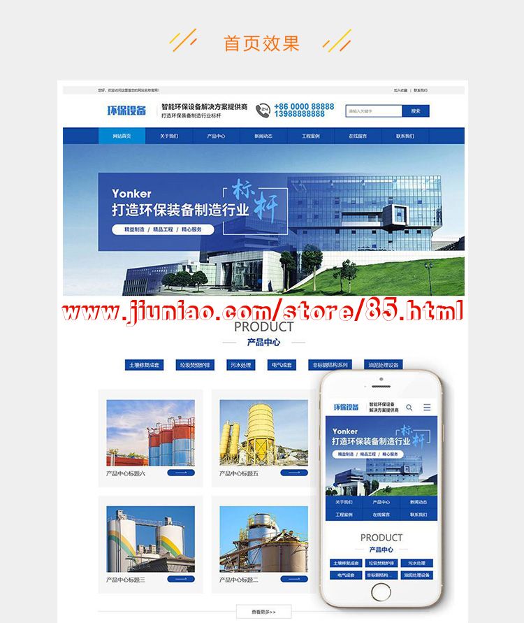 pbootcms蓝色大气智能环保设备制造公司网站源码 带手机版