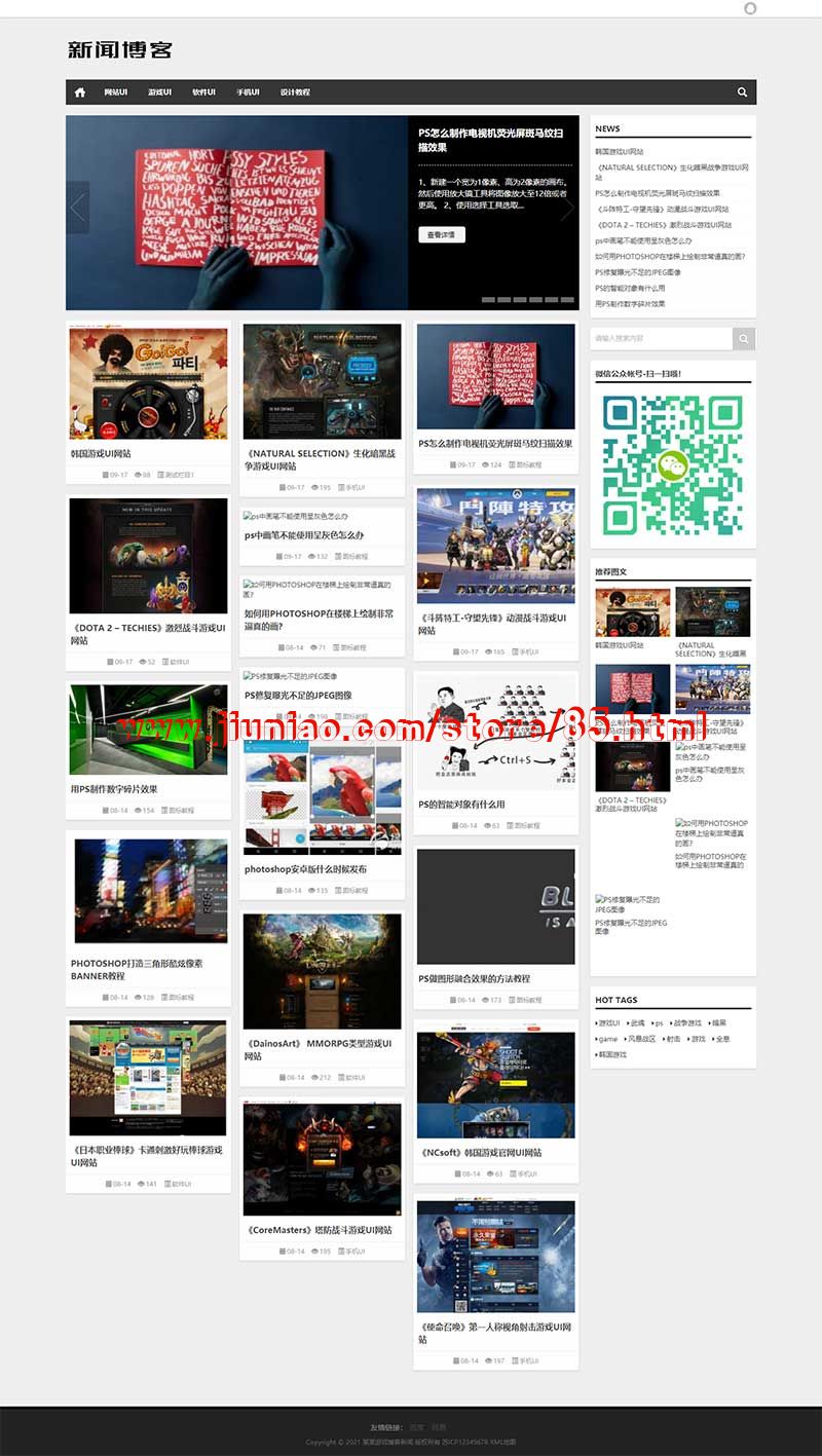 pbootcms黑色简单大气响应式新闻资讯博客网站源码 自适应手机端