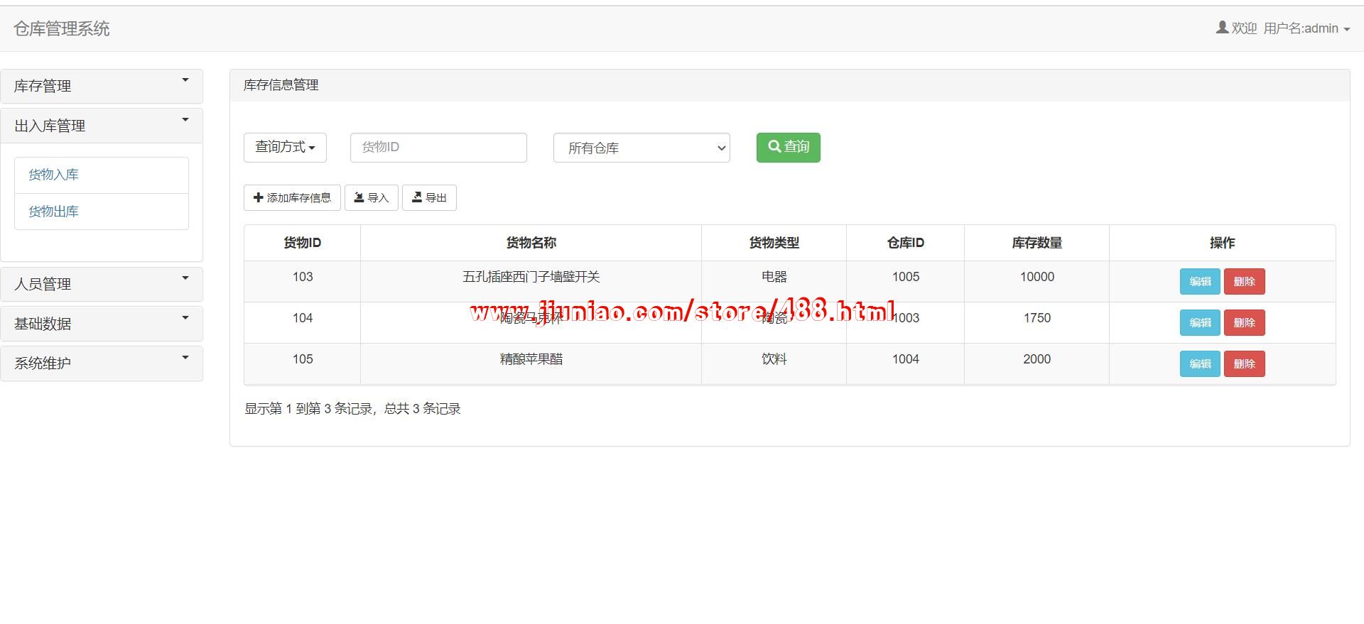Java SSM+JSP 网上仓库管理系统