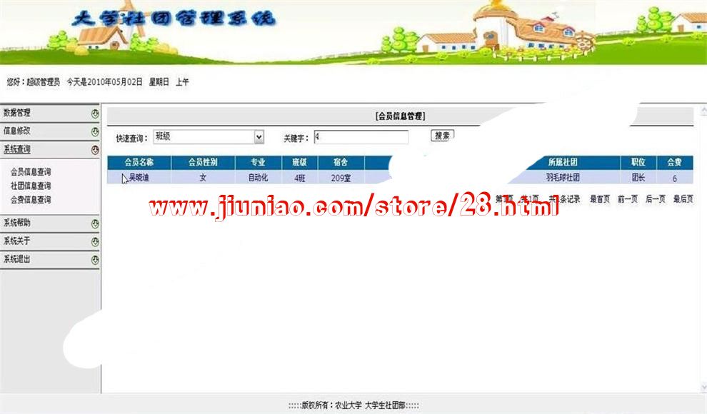 系统查询:会员信息查询 社团信息查询 会费信息查询