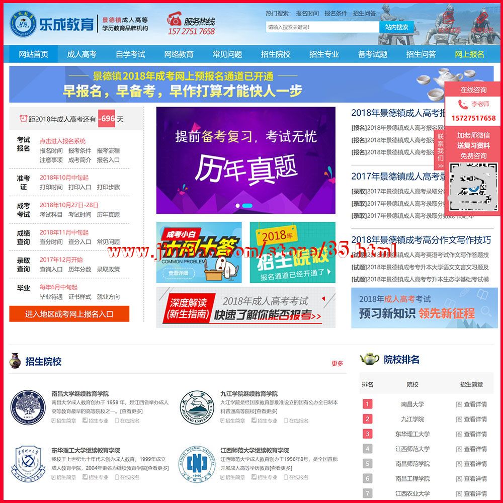 帝国cms7.5地方成人高考网络教育自考成考报名招生网站源码