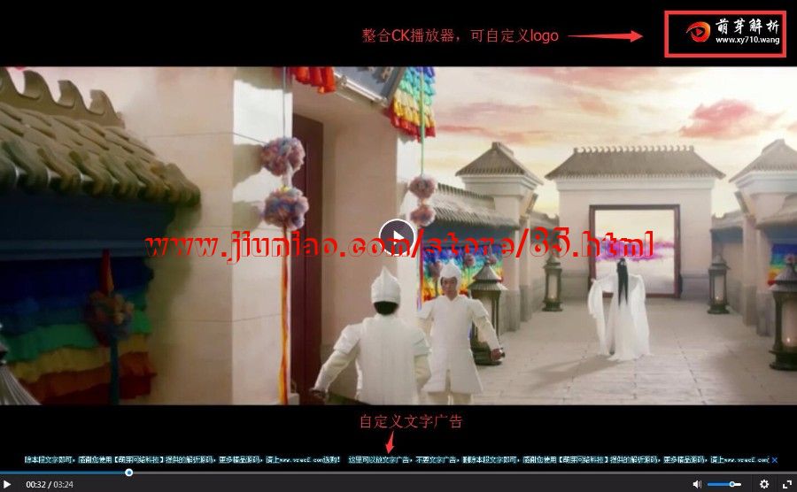 此解析源码只能解析mp4直链视频,共整合了两套播放器,一套整合的是CK播放器,PC端可自定义LOGO和文字广告,一套整合的是HTML5网页播放器,超大气精美!