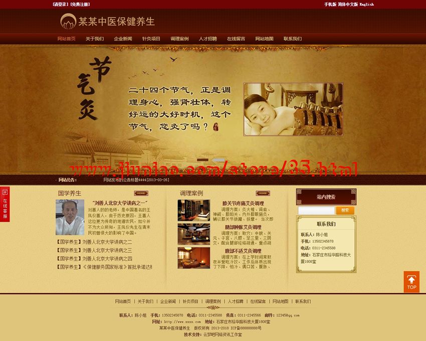基于ThinkPHP开发的一款中医养生保健类企业网站建站通用模板,集电脑网站、手机网站、微信于一体,系统支持双语言、自定义模型、SEO优化、静态页生成、留言、会员、广告、招聘、自助表单等常见企业网站基本功能。
