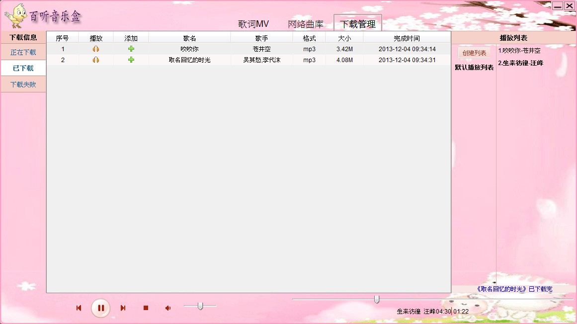 粉红色风格java音乐播放器软件源码