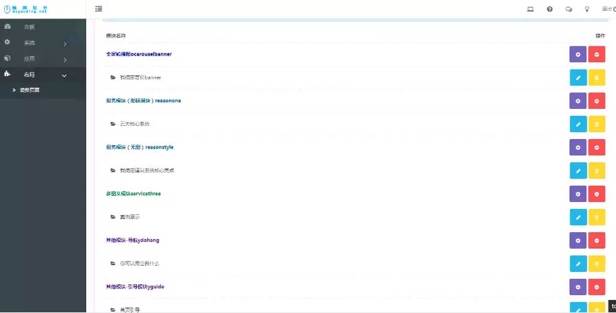 模块组件:任意模块可随意卸载、安装、编辑、复制、删除、开启或关闭,维护简单。