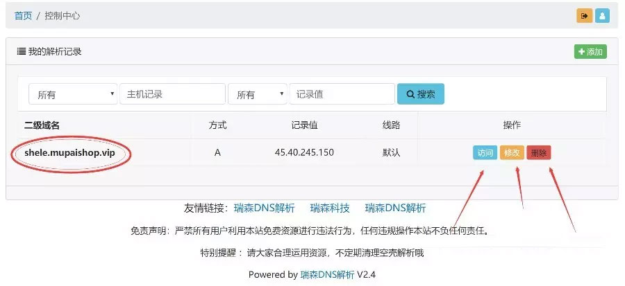 从以上网站获取 ID和APIKEY 填入系统后台后 即可实现域名分发