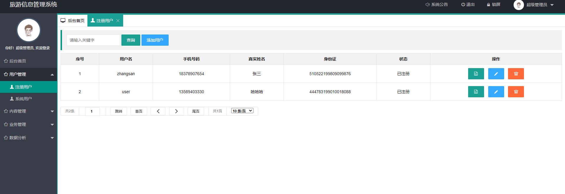 用户管理 旅游路线管理 景点管理 酒店管理 留言管理 车票管理 保险管理 订单管理