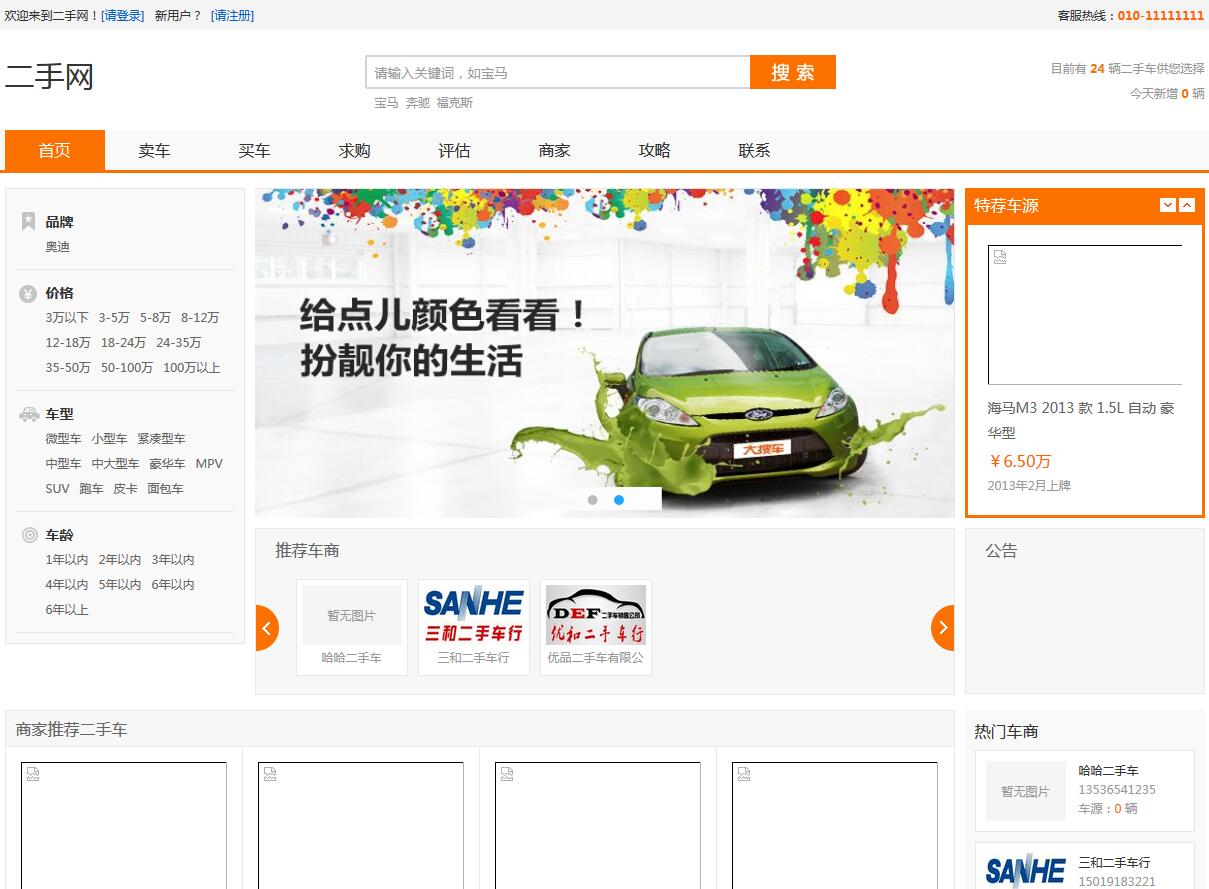 PHP橙色大气二手车交易平台网站源码 带手机端