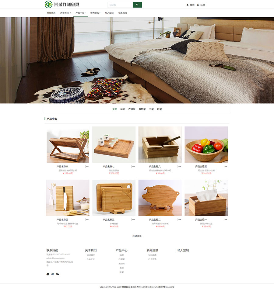 PHP宽屏大气响应式创意竹制家具公司网站源码 自适应手机端