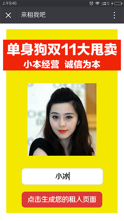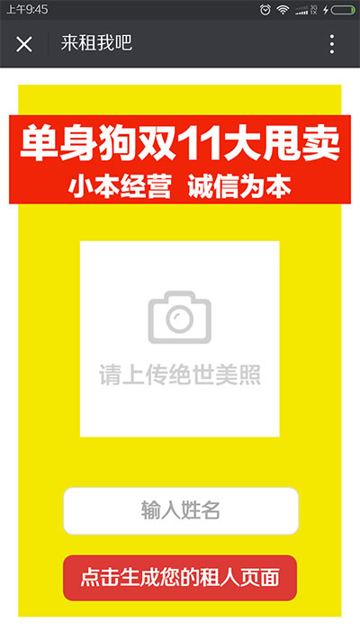 PHP+H5来租我吧单身狗大甩卖情人节吸粉源码