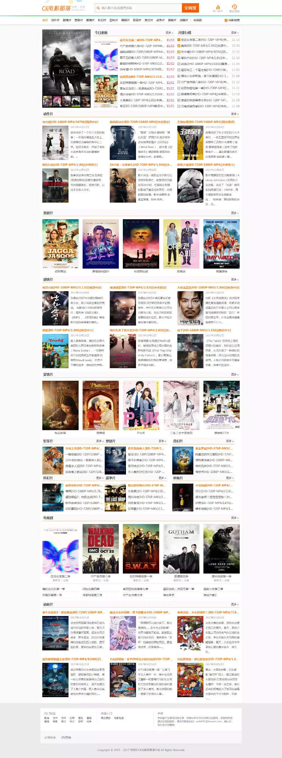 帝国CMS仿《ck电影部落》影视电影下载网站源码 种子下载 磁力下载 带手机版和采集