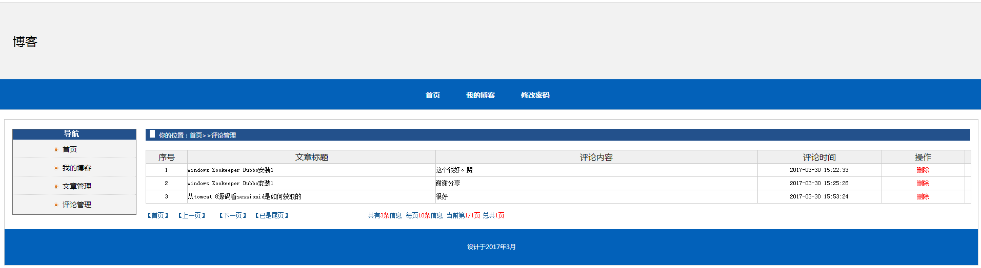 会员端功能:登录、博客浏览、博客评论、文章信息管理(发布博客、修改博客、删除博客)、评论管理。
