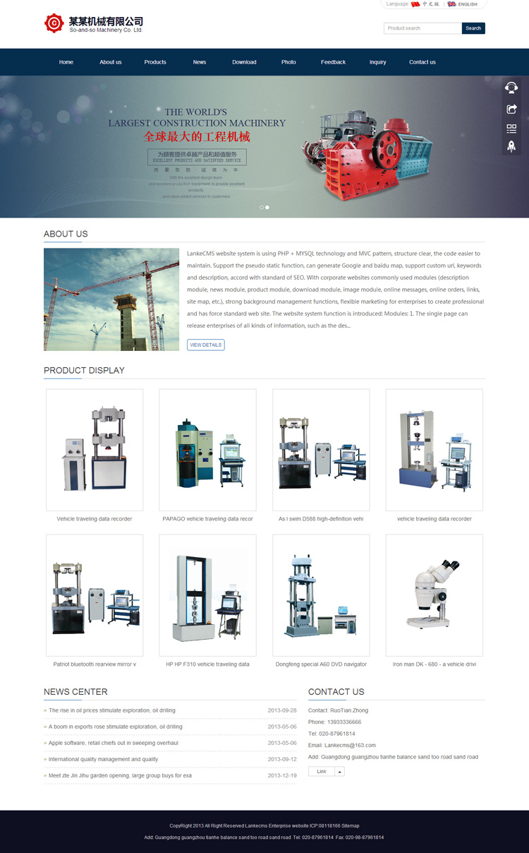 1.单页模块:可发布企业的各类信息,如企业简介、组织机构、企业荣誉、联系方式等,并可随意增删。