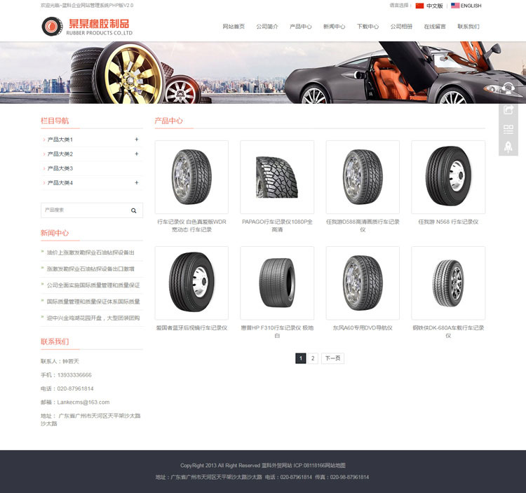 3.产品模块:产品支持二级分类,并可对产品直接下订单询价,且支持邮件通知,更符合企业营销。