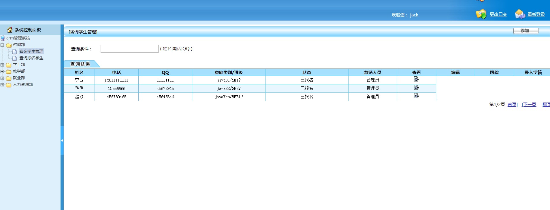 java ssm培训机构学生/教学/就业/人力资源crm管理系统源码