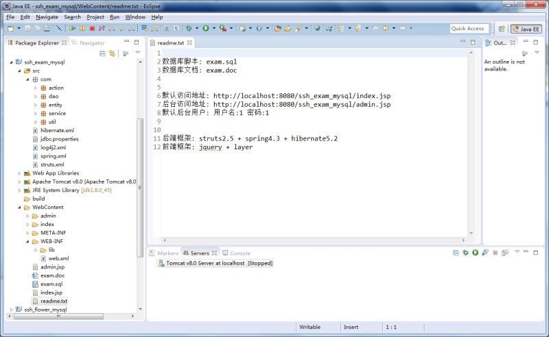 开发环境: eclipse+jdk1.8及以上+tomcat8及以上