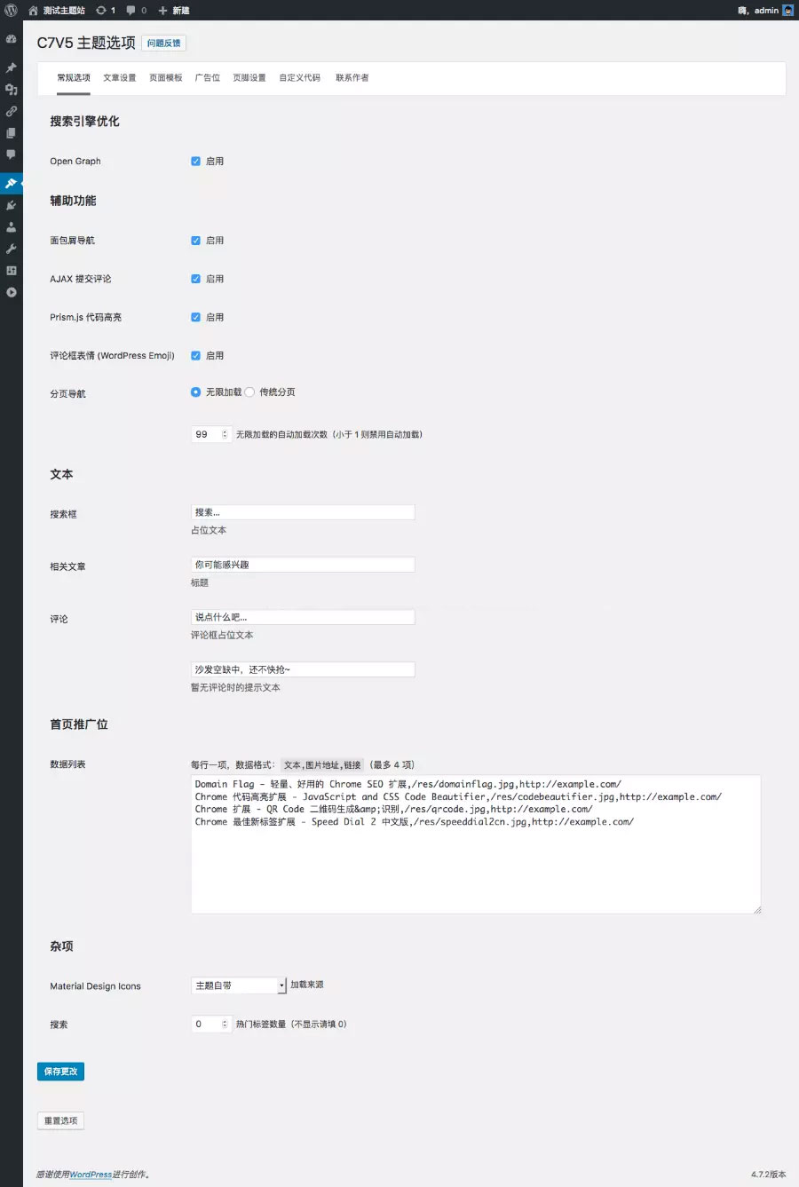 主题选项面板 简单又好用