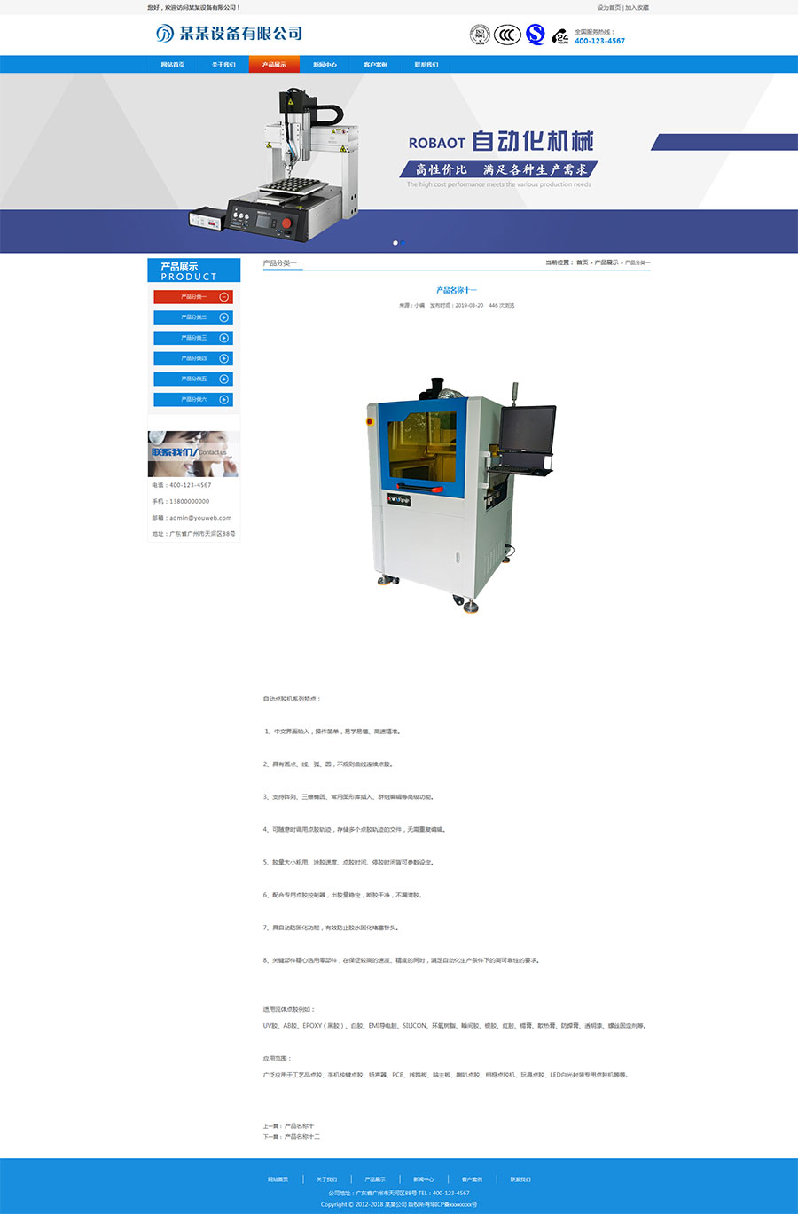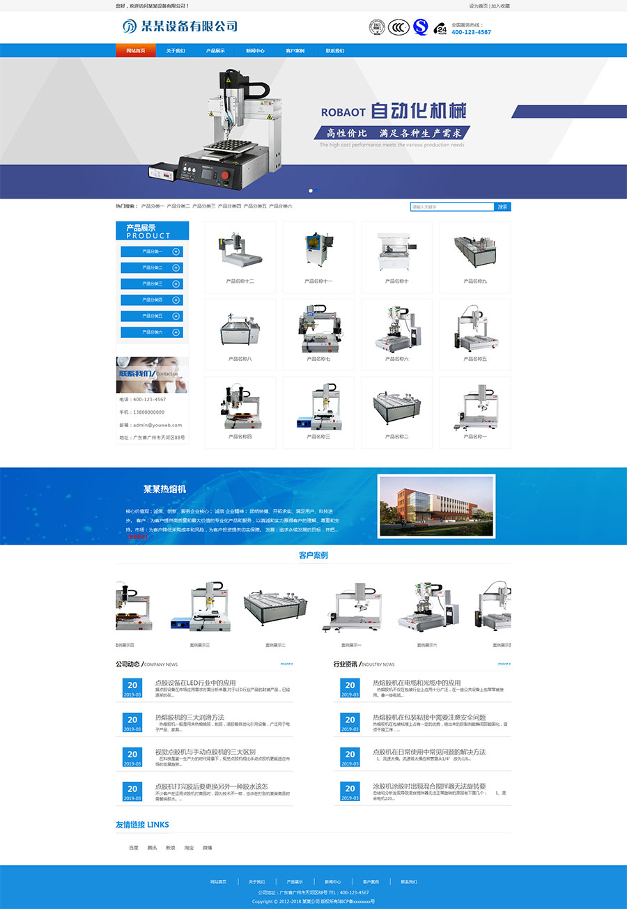 Thinkphp自动化设备点胶机热熔机企业网站源码 带手机端 带后台