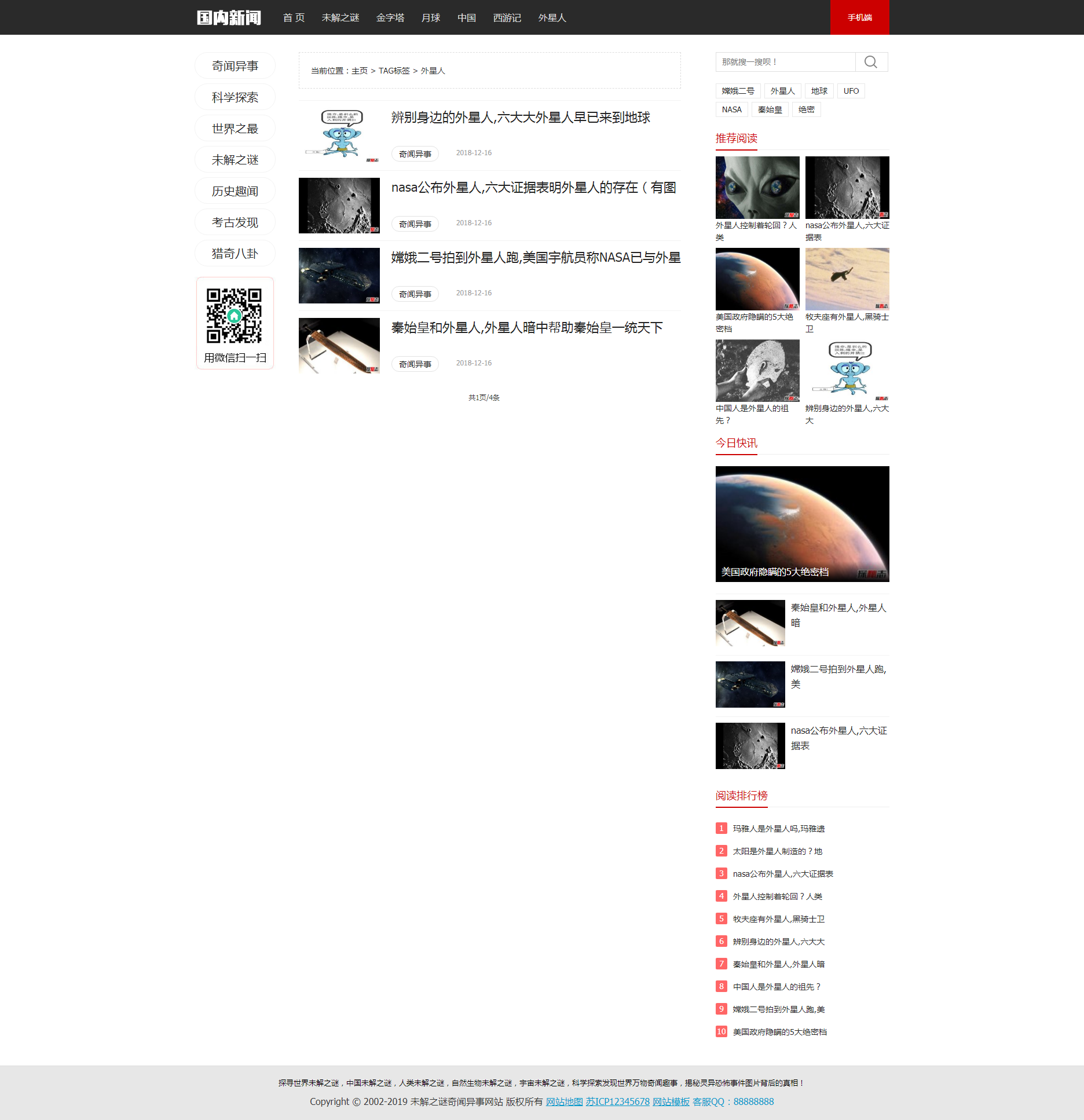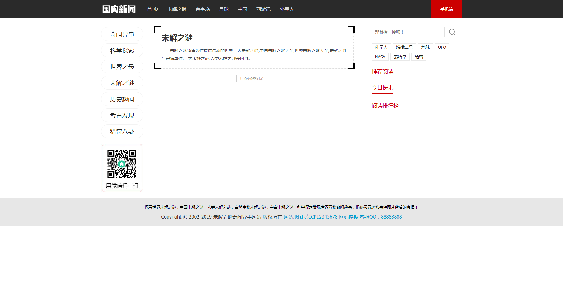 模板名称:(带手机版数据同步)未解之谜新闻网类网站织梦模板 奇闻异事网站源码下载