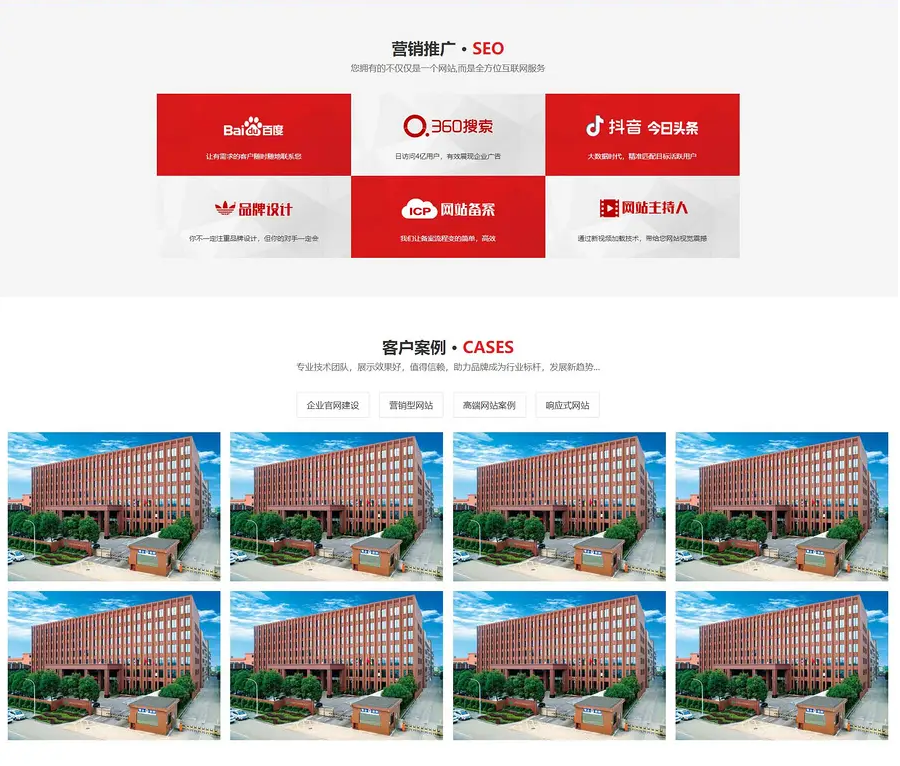 PBOOTCMS内核开发的一套红色大气响应式营销型网络公司建站优化公司网站源码PBOOTCMS模板