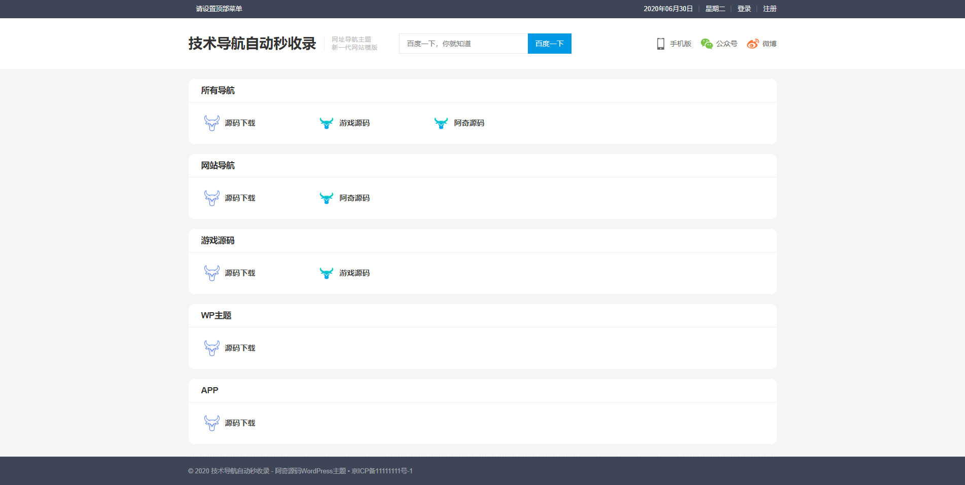 爱导航是一款原创品牌开发设计的wordpress网址导航大全主题风格,适用建立好看、强劲的导航栏类网址。这款导航栏主题风格的主页选用模块化,能够 加上不一样连接归类下的连接,每一个控制模块都能够挑选是不是显示信息连接标志、连接叙述,能够 设定要显示信息的连接数量、每列要显示信息的连接数、题目大小、连接打开,这些。