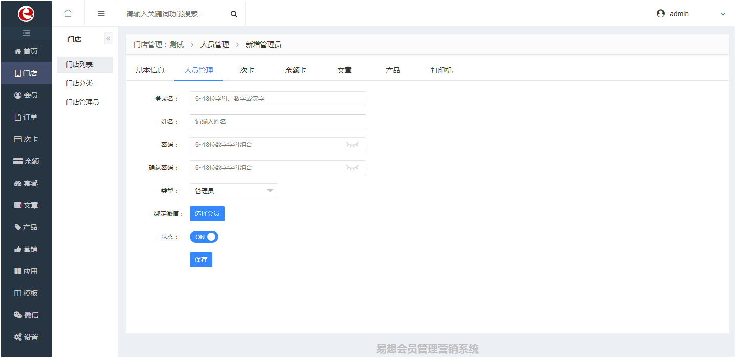1.门店:门店列表、门店分类、门店管理员。