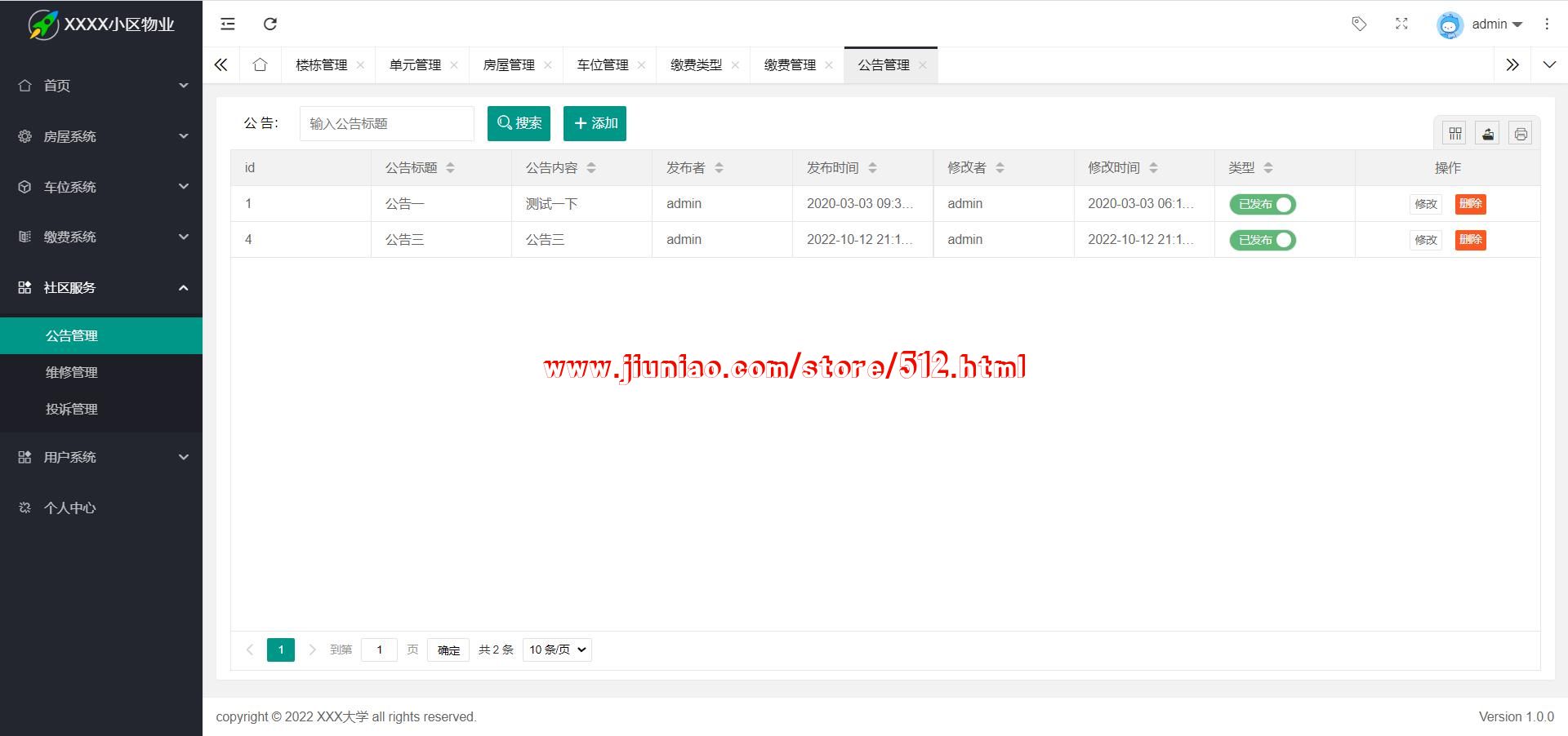 楼栋管理(添加楼栋、搜索指定楼栋、修改楼栋、删除楼栋、导出数据)