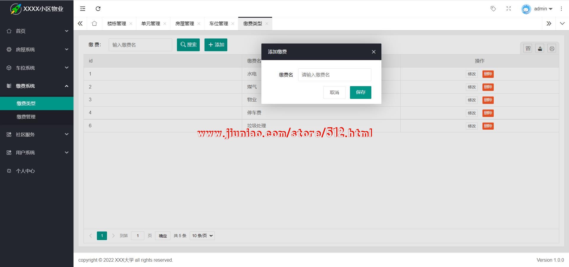 缴费类型(添加缴费类型、搜索指定缴费类型、修改缴费类型、删除缴费类型、导出数据)