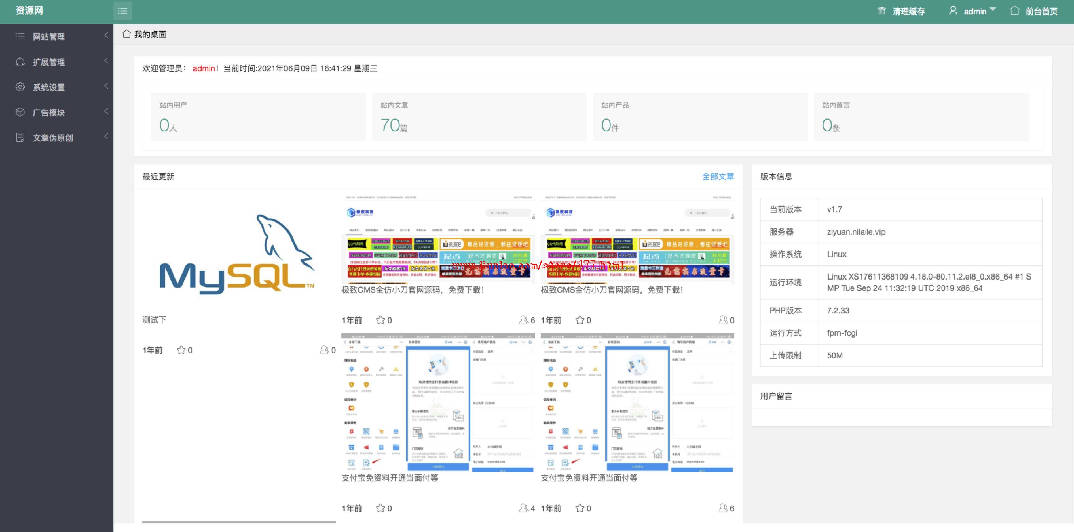 演示后台:http://ziyuan.nilaile.vip/admin.php